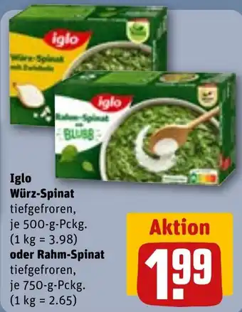 Iglo Würz-Spinat oder Rahm-Spinat Aktion bei REWE