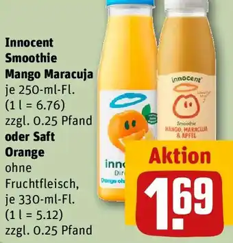 Jetzt im Angebot bei REWE: Innocent Smoothie Mango Maracuja oder Saft Orange ✅ Aktion gültig vom 9-03 bis 15-03.