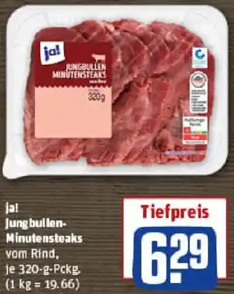 Jetzt im Angebot bei REWE: ja! Jungbullen Minutensteaks ✅ Aktion gültig vom 29-12 bis 4-01.
