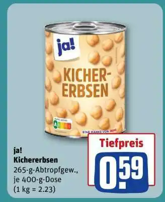 Jetzt im Angebot bei REWE: ja! Kichererbsen ✅ Aktion gültig vom 12-01 bis 18-01.