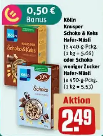 Kölln Knusper Schoko & Keks Hafer Müsli oder Schoko weniger Zucker Hafer Müsli Aktion bei REWE