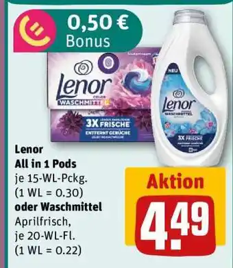 Jetzt im Angebot bei REWE: Lenor All in 1 Pods ✅ Aktion gültig vom 19-01 bis 25-01.