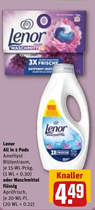 Lenor All in 1 Pods oder Washmittel flussig Angebote und Aktionen bei REWE