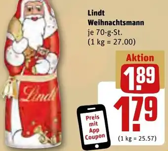 Lindt Weihnachtsmann 70-g-St.-Rabatt bei REWE