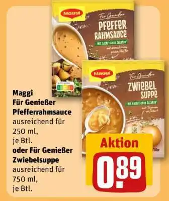 Maggi Für Genießer Pfefferrahmsauce oder Für Genießer Zwiebelsuppe Angebote und Online Aktionen direkt aus dem aktuellen REWE Angebot
