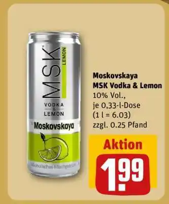 Jetzt im Angebot bei REWE: Moskoskaya MSK Vodka & Lemon ✅ Aktion gültig vom 22-02 bis 1-03.