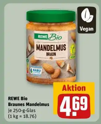 Jetzt im Angebot bei REWE: REWE Bio Braunes Mandelmus ✅ Aktion gültig vom 18-01 bis 25-01.