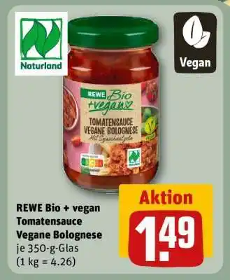 Jetzt im Angebot bei REWE: REWE Bio + vegan Tomatensauce Vegane Bolognese ✅ Aktion gültig vom 18-01 bis 25-01.