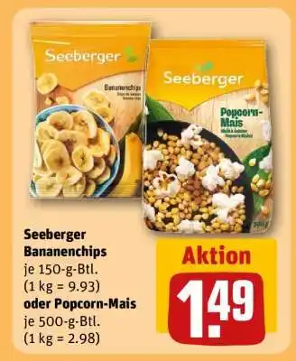 Seeberger Bananenchips oder Popcorn-Mais Aktion bei REWE