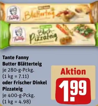 Tante Fanny Butter Blätterteig oder Frischer Dinkel Pizzateig-Angebot bei REWE