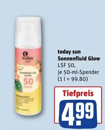 Jetzt im Angebot bei REWE: today sun Sonnenfluid Glow ✅ Aktion gültig vom 27-04 bis 3-05.