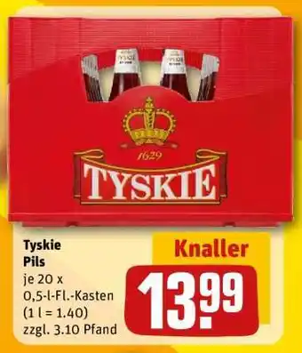 Jetzt im Angebot bei REWE: Tyskie Pils ✅ Aktion gültig vom 19-01 bis 25-01.
