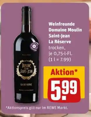 Jetzt im Angebot bei REWE: Weinfreunde Domaine Moulin Saint-Jean La Reserve ✅ Aktion gültig vom 2-03 bis 8-03.