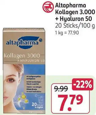 Altapharma Kollagen 3.000 + Hyaluron 50, 20 Sticks/100 g-Rabatt bei Rossmann