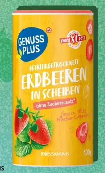 Jetzt im Angebot bei Rossmann: Genuss Plus Gefriergetrocknete Erdbeeren in Scheiben Maxi XL ✅ Aktion gültig vom 5-01 bis 10-01.