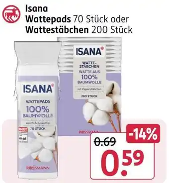 Isana wattepads oder wattestäbchen 200 stück Aktion bei Rossmann