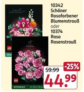 Jetzt im Angebot bei Rossmann: Lego schöner rosafarbener blumenstrauß oder rosa rosenstrauß ✅ Aktion gültig vom 9-02 bis 13-02.