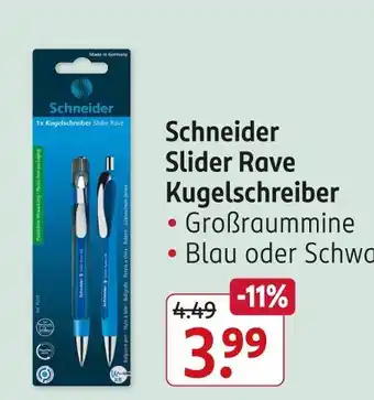 Jetzt im Angebot bei Rossmann: Schneider slider rave kugelschreiber ✅ Aktion gültig vom 26-01 bis 30-01.
