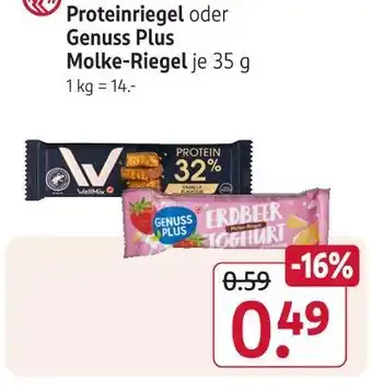 Jetzt im Angebot bei Rossmann: Wellmix proteinriegel oder genuss plus oder molke-riegel je 35 g ✅ Aktion gültig vom 9-03 bis 13-03.
