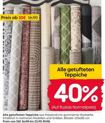 Den Preis von dem Alle getufteten teppiche finden Sie auch oben auf der Website, zusammen mit dem Datum, ab wann das Angebot erhältlich ist. Sie können die Preise auch im aktuellen Rusta Prospekt nachhalten oder auf der Rusta Website nachschauen. Durch die Angebote können Sie sicher sein, die Rusta Produkte zum absoluten Bestpreis zu ergattern.