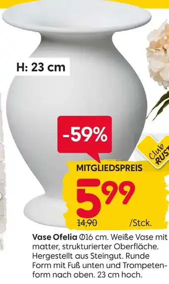 Jetzt im Angebot bei Rusta: Vase ofelia ✅ Aktion gültig vom 24-01 bis 30-01.