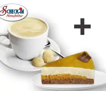 Scheck-in Manufaktur Tasse Kaffee + 1 Stück Mandarinen Schmandcreme-Torte Aktion bei Scheck-in-Center