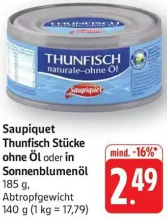 Saupiquet Thunfisch Stücke ohne Öl oder in Sonnenblumenöl-Angebot bei Schmidt's Märkte