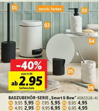 Viele erstellen ihre Einkaufsliste basierend auf Aktionen. Deshalb finden Sie auf unserer Website die Angebote der nächsten Woche als Erste. So wissen Sie genau, wann sich ein Kauf lohnt. Behalten Sie die Übersicht im Auge, um kein Badzubehör-serie „smart & bow“ Angebot zu verpassen.In welchem Geschäft ist Badzubehör-serie „smart & bow“ nächste Woche im Angebot?