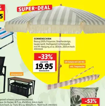 Abgesehen von Sonnenschirm, bietet SCONTO eine Menge anderer Artikel an. Behalten Sie den wöchentlichen SCONTO Prospekt im Blick, um die besten Angebote und Aktionen nicht zu verpassen. Abgesehen von Sonnenschirm können Sie weitere, interessante Angebote entdecken: Sonnenschirm, Sonnenschirm & Sonnenschirm.