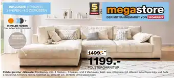 Den Preis von dem Polstergarnitur marsala finden Sie auch oben auf der Website, zusammen mit dem Datum, ab wann das Angebot erhältlich ist. Sie können die Preise auch im aktuellen Segmüller Prospekt nachhalten oder auf der Segmüller Website nachschauen. Durch die Angebote können Sie sicher sein, die Segmüller Produkte zum absoluten Bestpreis zu ergattern.