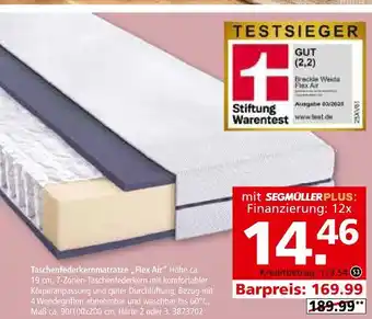 Jetzt im Angebot bei Segmüller: Taschenfederkernmatratze flex air ✅ Aktion gültig vom 28-02 bis 22-03.