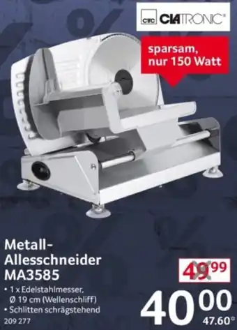Jetzt im Angebot bei Selgros: CLATRONIC Metall Allesschneider MA3585 ✅ Aktion gültig vom 5-02 bis 18-02.