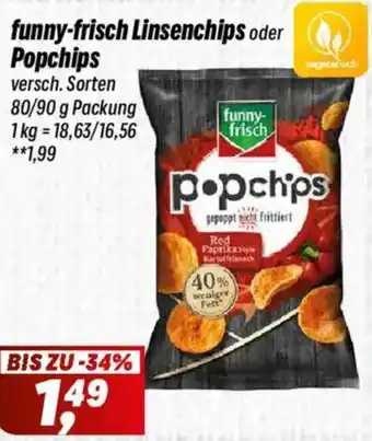 funny-frisch Linsenchips oder Popchips 80/90 g