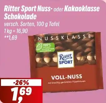 Ritter Sport Nuss- oder Kakaoklasse Schokolade 100 g