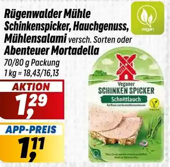 Rügenwalder Mühle Schinkenspicker, Hauchgenuss, Mühlensalami oder Abenteuer Mortadella-Rabatt bei Simmel