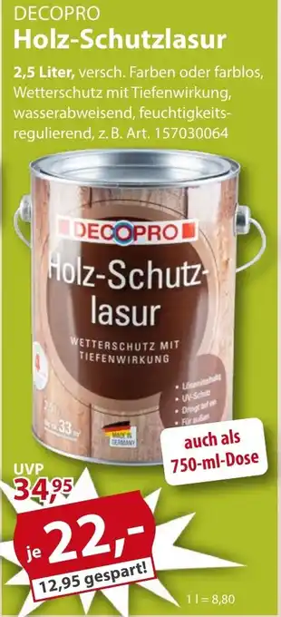 DECOPRO Holz-Schutzlasur Angebote und Online Aktionen direkt aus dem aktuellen Sonderpreis Baumarkt Angebot