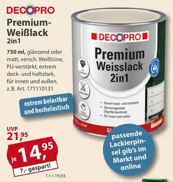 DECOPRO Premium- Weiẞlack Angebote und Online Aktionen direkt aus dem aktuellen Sonderpreis Baumarkt Angebot