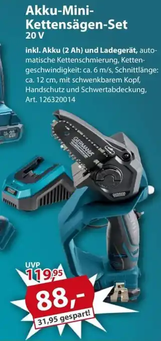 GERMANIA Akku-Mini- Kettensägen-Set Angebote und Online Aktionen direkt aus dem aktuellen Sonderpreis Baumarkt Angebot