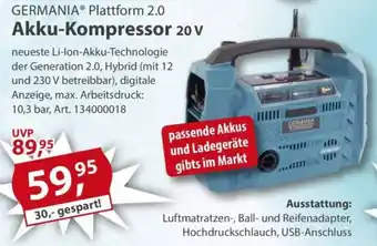 GERMANIA Plattform 2.0 Akku-Kompressor 20 v Aktion bei Sonderpreis Baumarkt