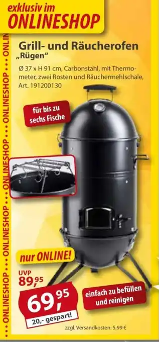 Jetzt im Angebot bei Sonderpreis Baumarkt: Grill- und Räucherofen ,,Rügen" ✅ Aktion gültig vom 31-01 bis 6-02.