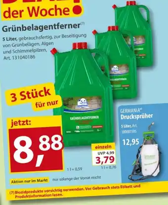 Den Preis von dem Grünbelagentferner finden Sie auch oben auf der Website, zusammen mit dem Datum, ab wann das Angebot erhältlich ist. Sie können die Preise auch im aktuellen Sonderpreis Baumarkt Prospekt nachhalten oder auf der Sonderpreis Baumarkt Website nachschauen. Durch die Angebote können Sie sicher sein, die Sonderpreis Baumarkt Produkte zum absoluten Bestpreis zu ergattern.