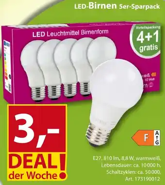 LED-Birnen 5er-Sparpack-Rabatt bei Sonderpreis Baumarkt