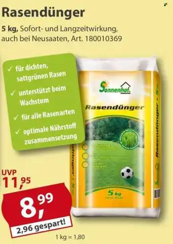 Sonnenhof Rasendünger Angebote und Aktionen bei Sonderpreis Baumarkt