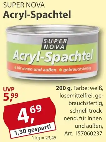 Jetzt im Angebot bei Sonderpreis Baumarkt: SUPER NOVA Acryl-Spachtel ✅ Aktion gültig vom 17-01 bis 23-01.
