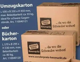 Umzugskarton oder Bücherkarton-Rabatt bei Sonderpreis Baumarkt