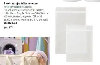 Mit recyceltem Material Für voluminöse Textilien. 2 XL-Größen: 1x für bis zu 3 kg, 1x für bis zu 5 kg Wäsche. 100% Polyester (recycelt). . Groß ca. 60 x 90 cm. Klein ca. 50 x 70 cm. Weiß 35 212 683