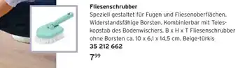 Speziell gestaltet für Fugen und Fliesenoberflächen. Widerstandsfähige Borsten. Kombinierbar mit Teles- kopstab des Bodenwischers.