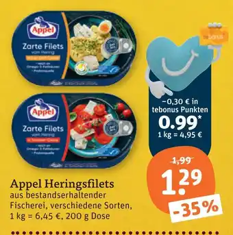 Jetzt im Angebot bei tegut: Appel zarte filets vom hering ✅ Aktion gültig vom 20-04 bis 25-04.