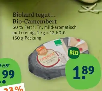 Jetzt im Angebot bei tegut: Bioland tegut... bio-camembert ✅ Aktion gültig vom 9-03 bis 14-03.