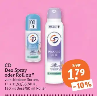 Jetzt im Angebot bei tegut: Cd deo spray oder roll on ✅ Aktion gültig vom 13-04 bis 18-04.